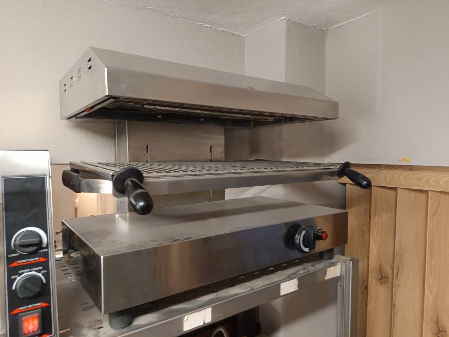 Συνοδεύεται από μία επιχρωμιωμένη σχάρα διαστάσεων 64,5 x 34 cm και ανοξείδωτο δίσκο περισυλλογής των υπολλειμμάτων διαστάσεων Gastronorm 1/1. Η σχάρα είναι ρυθμιζόμενη καθ’ ύψος σε 3 επίπεδα.